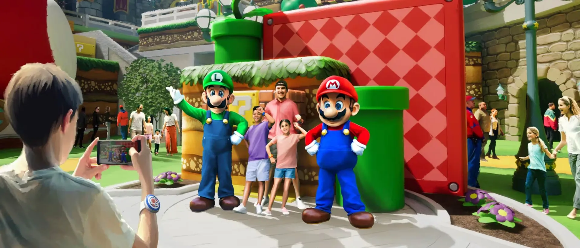 Além das atrações, a região conta com lojas e restaurantes temáticos — e ainda oferece a chance de encontrar personagens como Mario, Luigi, Princesa Peach, Toad e Donkey Kong ao longo do dia.